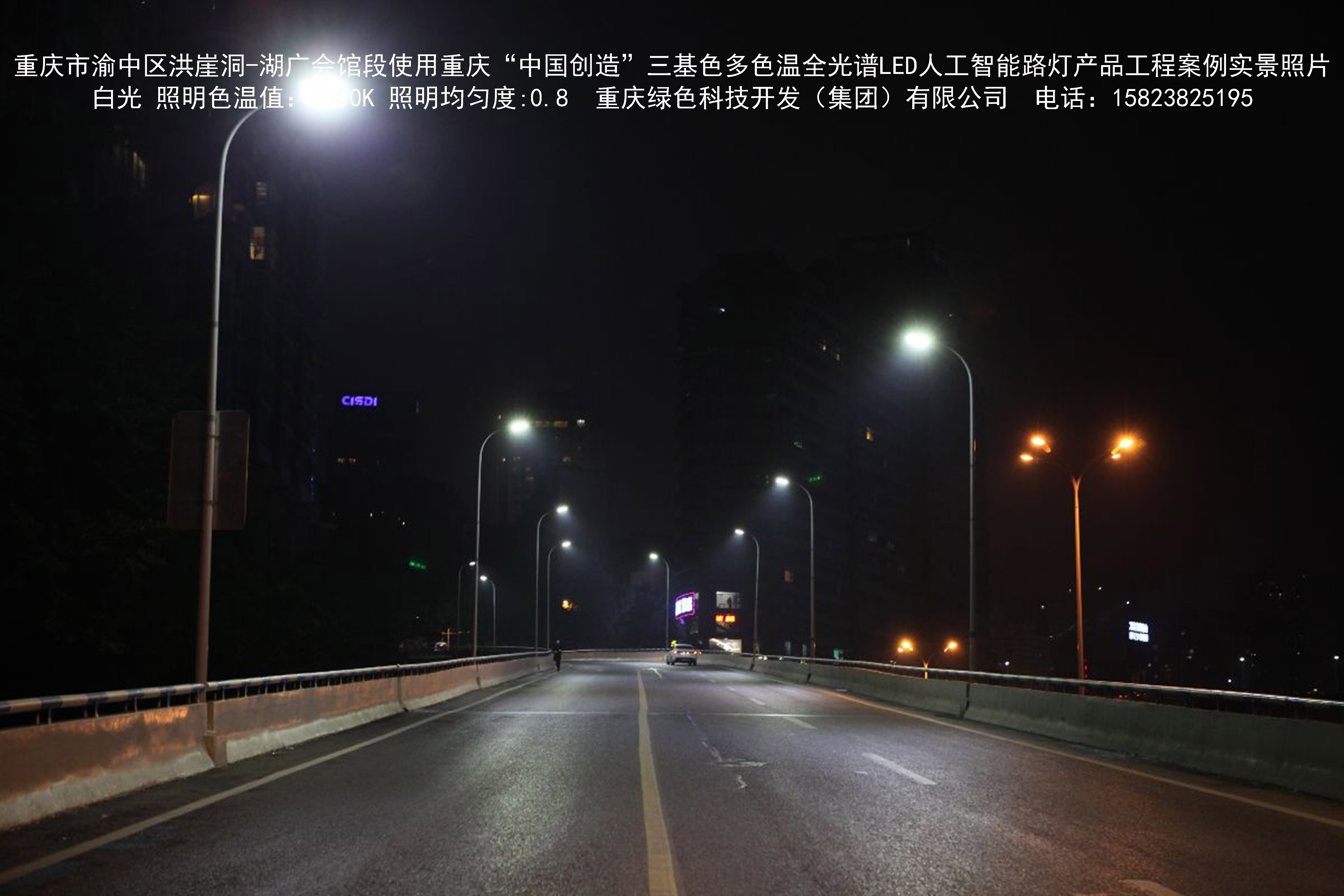 2018年12月,重慶市城市照明管理局使用我司自主研發(fā)制造的重慶“中國創(chuàng)造”三基色多色溫全光譜LED人工智能路燈系列產(chǎn)品,實施了渝中區(qū)市政設(shè)施品質(zhì)提升工程。該工程已全面竣工。工程實施后,極大地提高了城市照明清晰度、燈光均勻度、舒適度。通過智能終端實現(xiàn)單燈感知、線纜防盜報警,與原高壓鈉燈相比,節(jié)能率60%以上,有效解決了關(guān)閉控制回路或間隔關(guān)燈方式造成的照明暗區(qū),確保行人和車輛通行的安全,實現(xiàn)城市路燈照明系統(tǒng)的智能化管理,推進(jìn)了智慧城市建設(shè)。