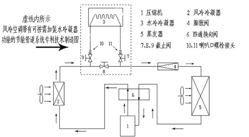一、風冷空調帶有可按需加裝水冷凝器功能的節(jié)能管道系統(tǒng)制造專利技術