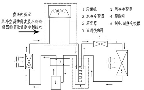 風冷空調可按需加裝水冷凝器節(jié)能管道系統(tǒng)工作原理