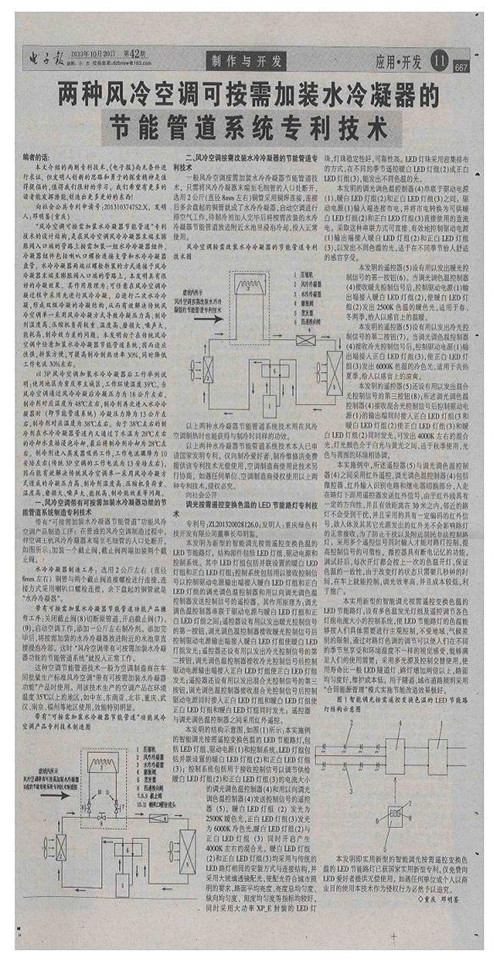 附件:1.《電子報》2013年10月20日刊發(fā)文章《兩種風冷空調可按需加裝水冷凝器的節(jié)能管道系統(tǒng)專利技術》復印件
