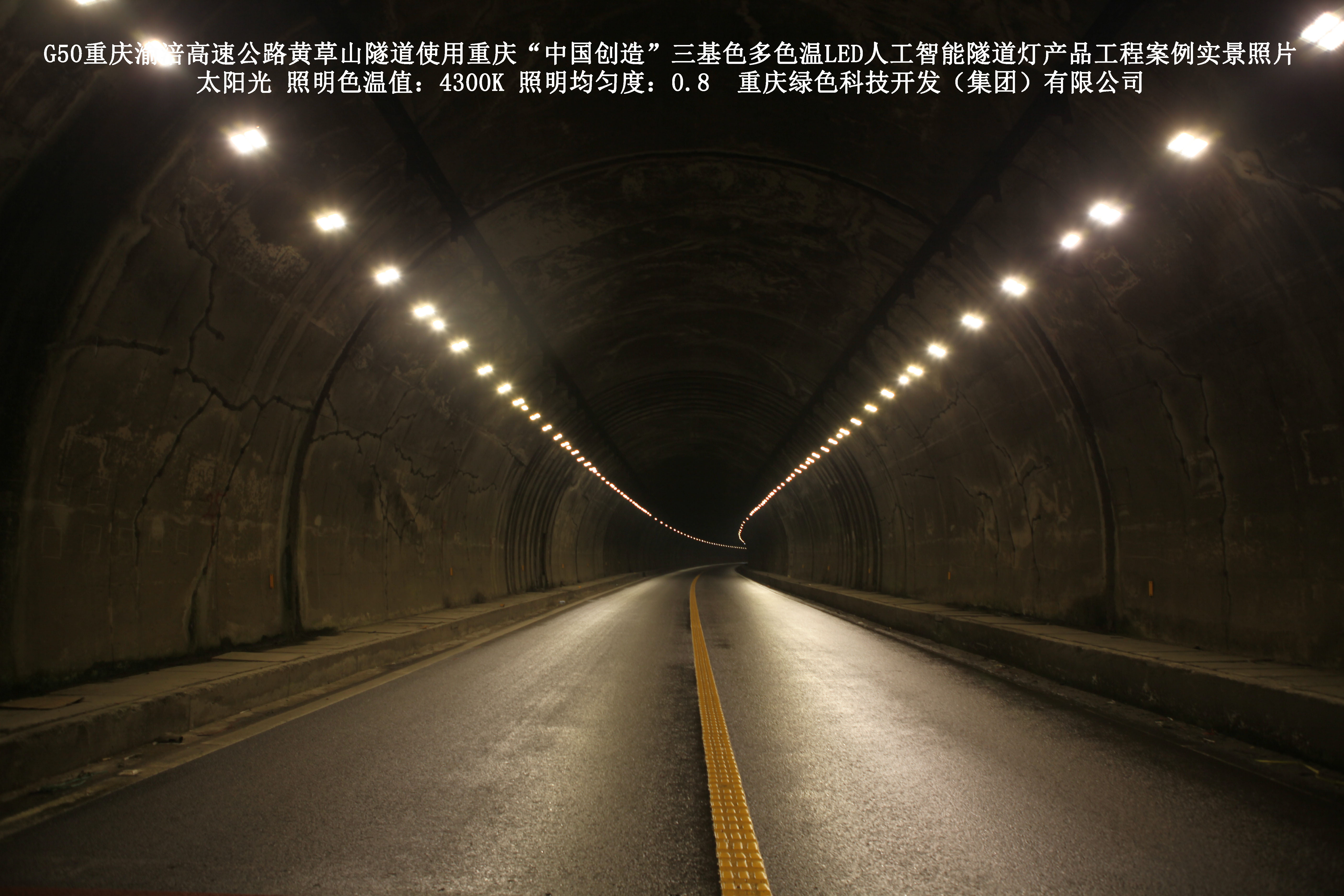 2016年7月,重慶渝涪高速公路有限公司使用了我司研發(fā)制造的重慶“中國創(chuàng)造”三基色多色溫LED人工智能隧道燈,對G50重慶渝涪高速公路黃草山隧道實施了綠色照明科技節(jié)能改造工程,工程實施后,極大地提高了隧道內(nèi)照明清晰度、燈光均勻度、舒適度。通過智能終端實現(xiàn)單燈感知、線纜防盜報警,與原高壓鈉燈相比,節(jié)能率60%以上,有效解決了關(guān)閉控制回路或間隔關(guān)燈方式造成的照明暗區(qū),確保車輛通行的安全。
