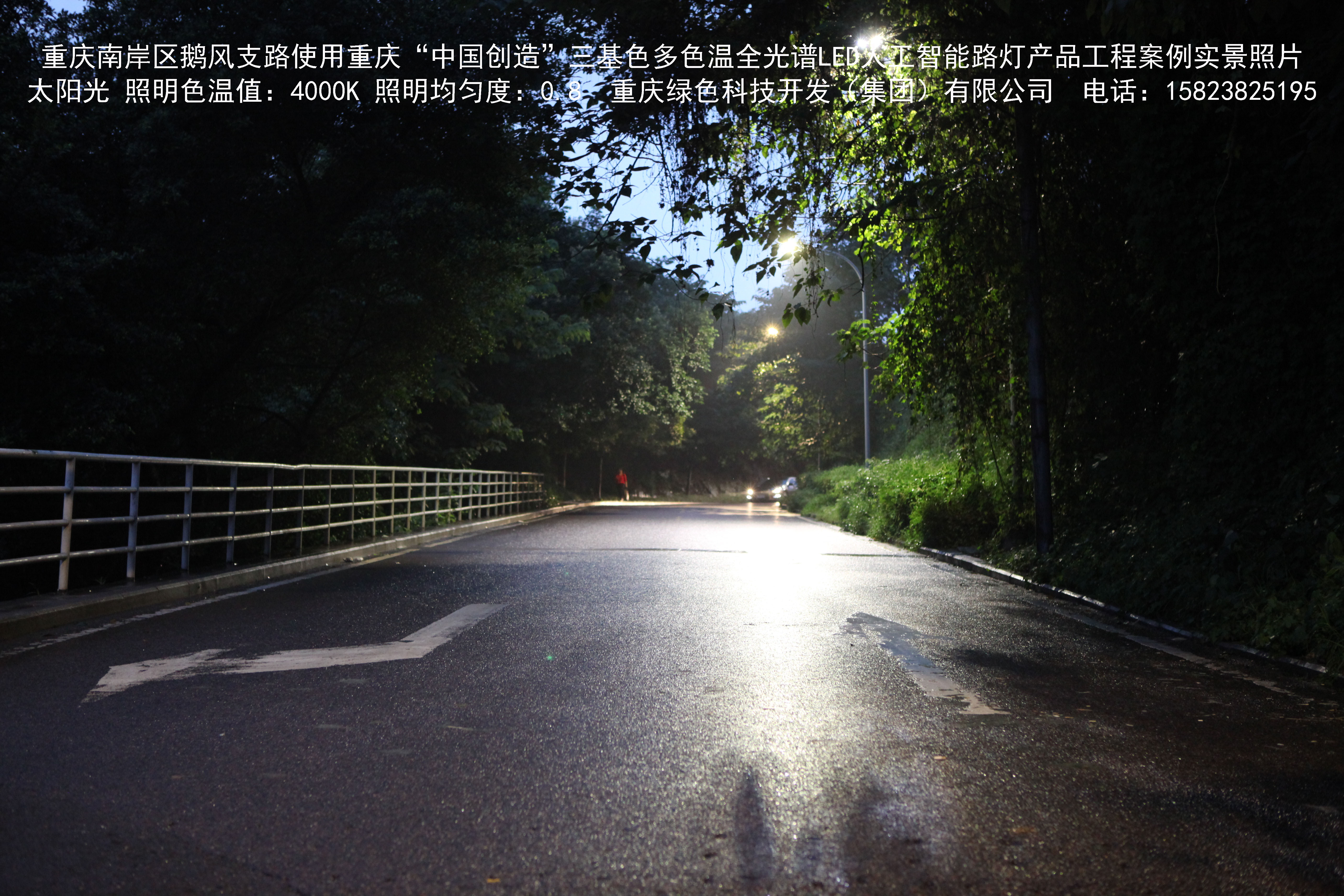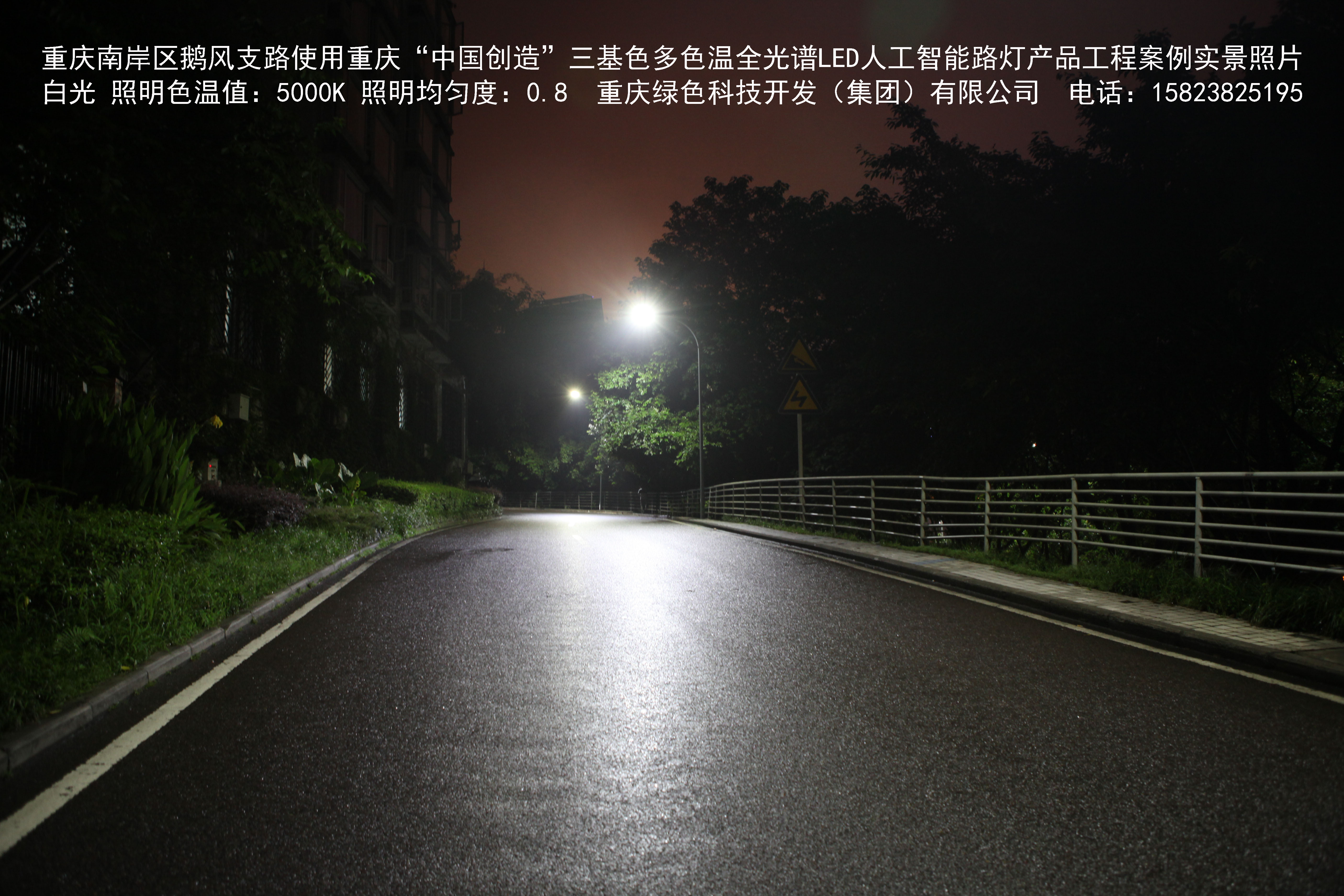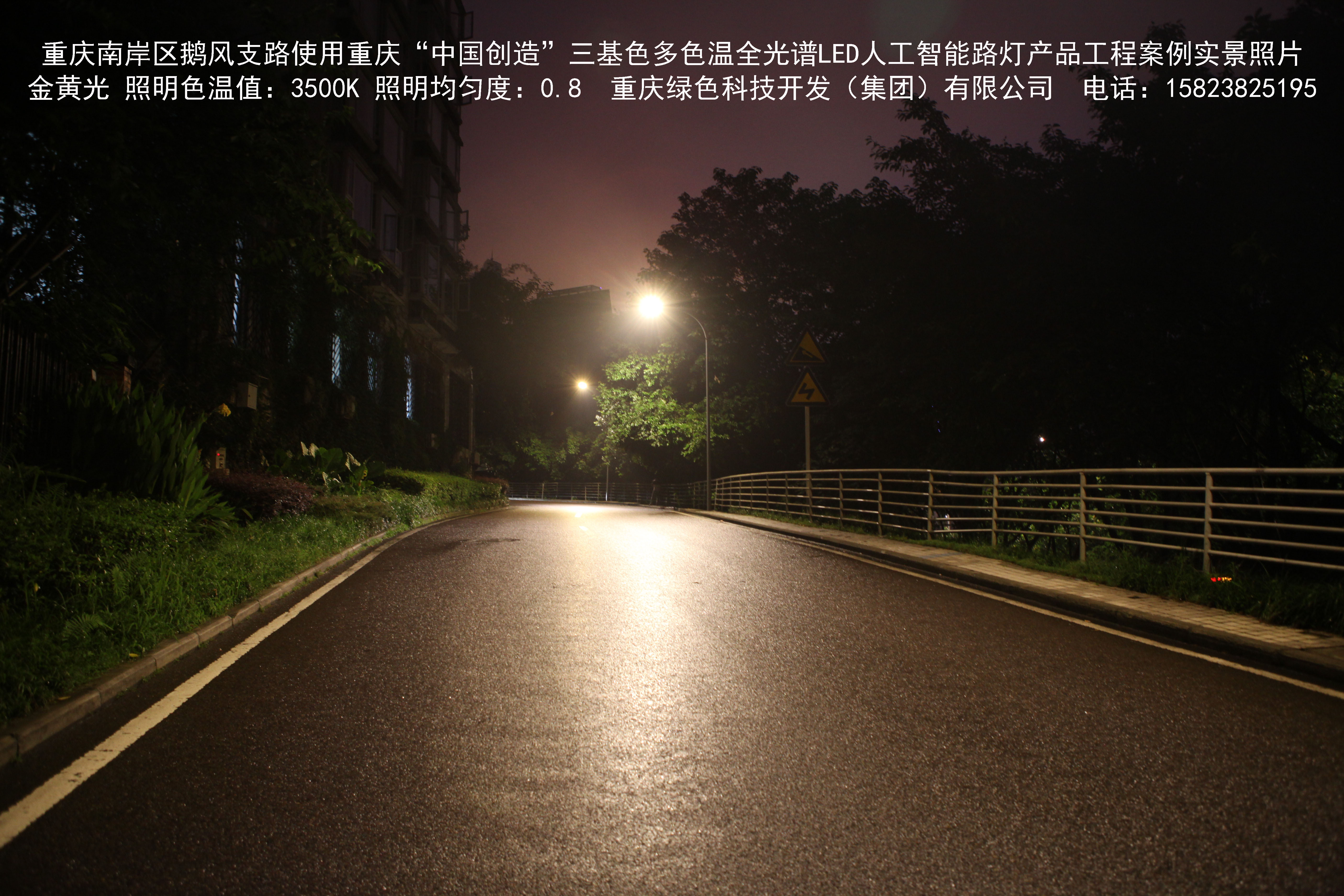 重慶市南岸區(qū)鵝風支路使用我司研造的重慶“中國創(chuàng)造”三基色多色溫全光譜LED人工智能路燈產品工程案例