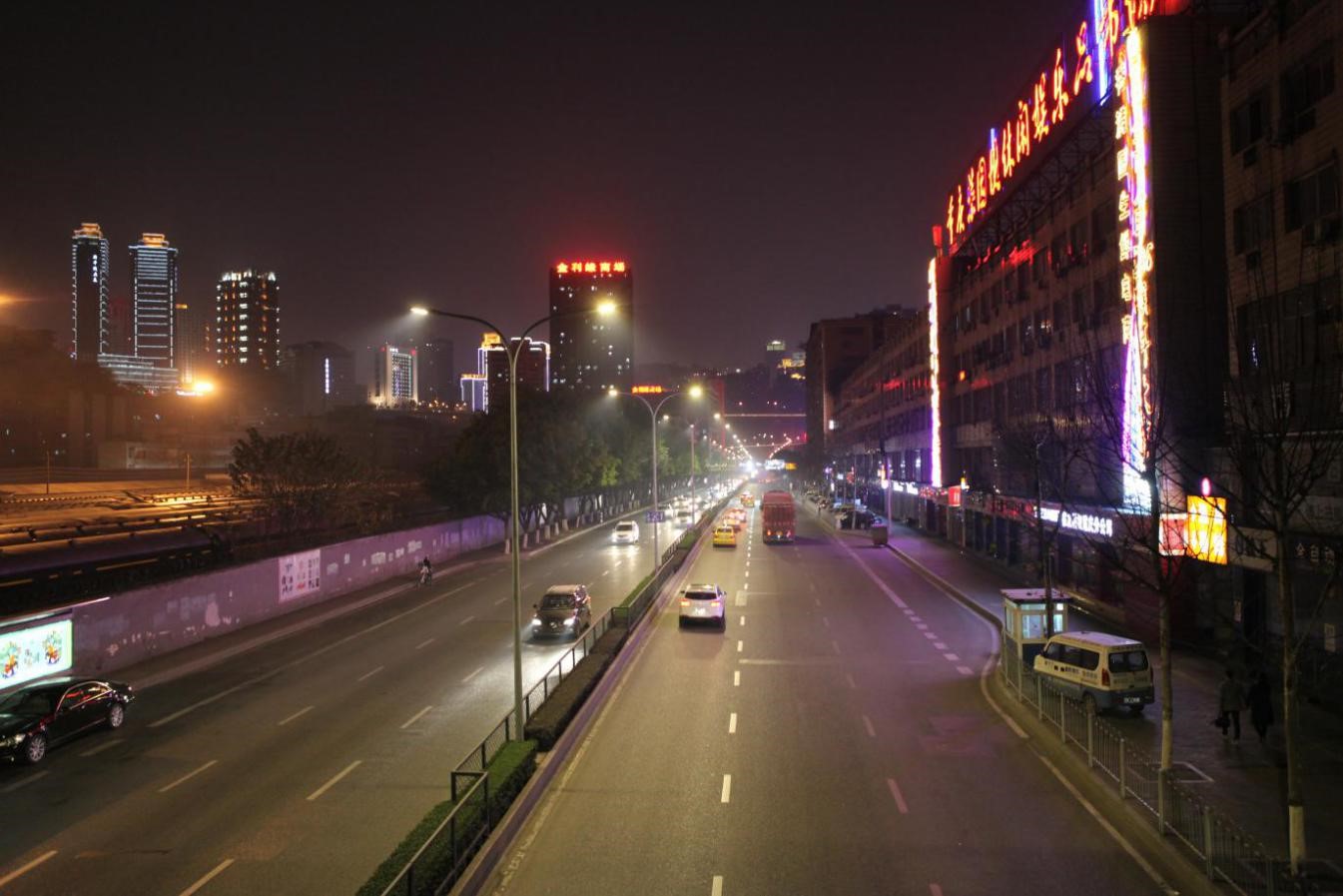重慶市渝中區(qū)菜袁路實施的物聯(lián)網(wǎng)多色溫防霧霾LED人工智能路燈