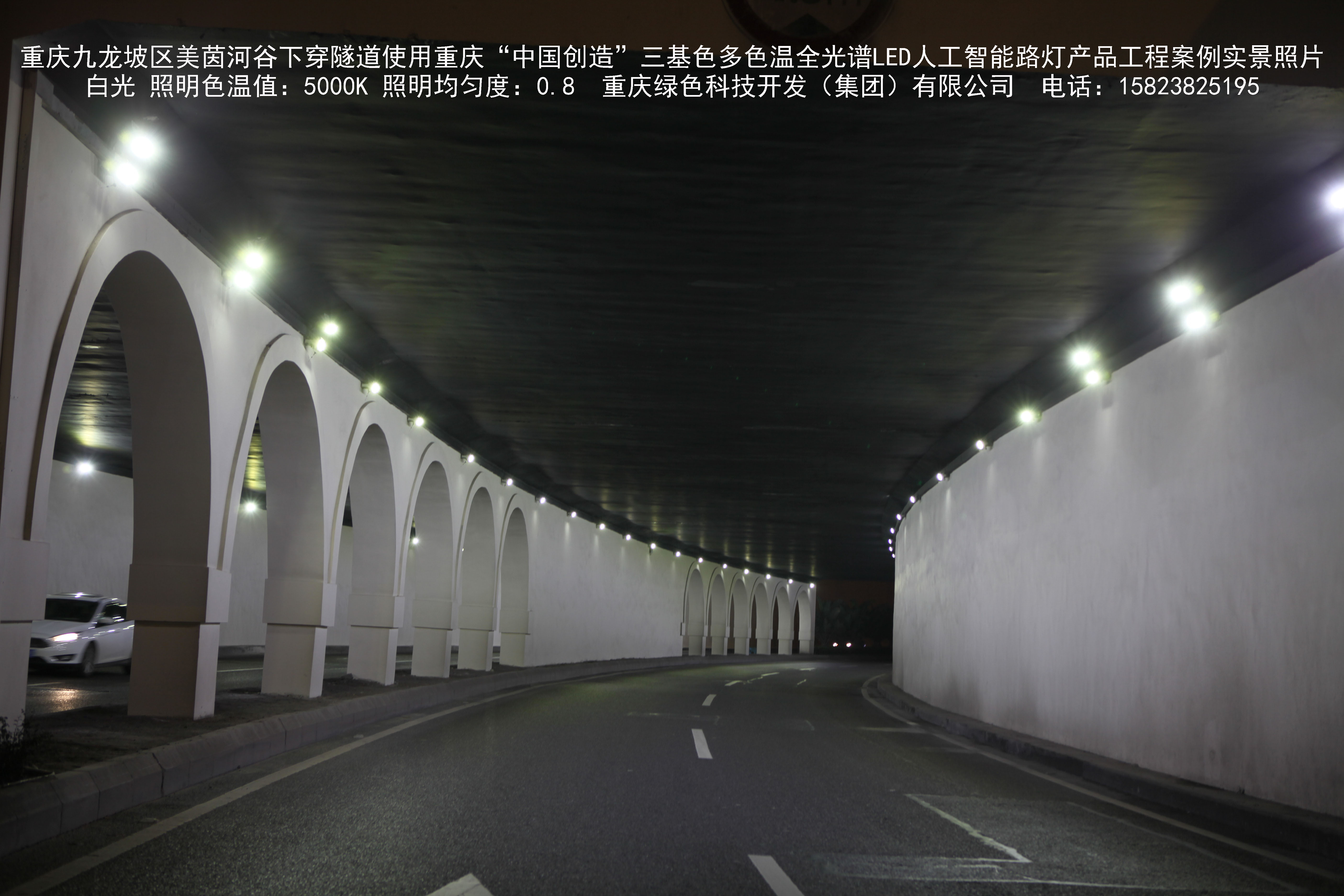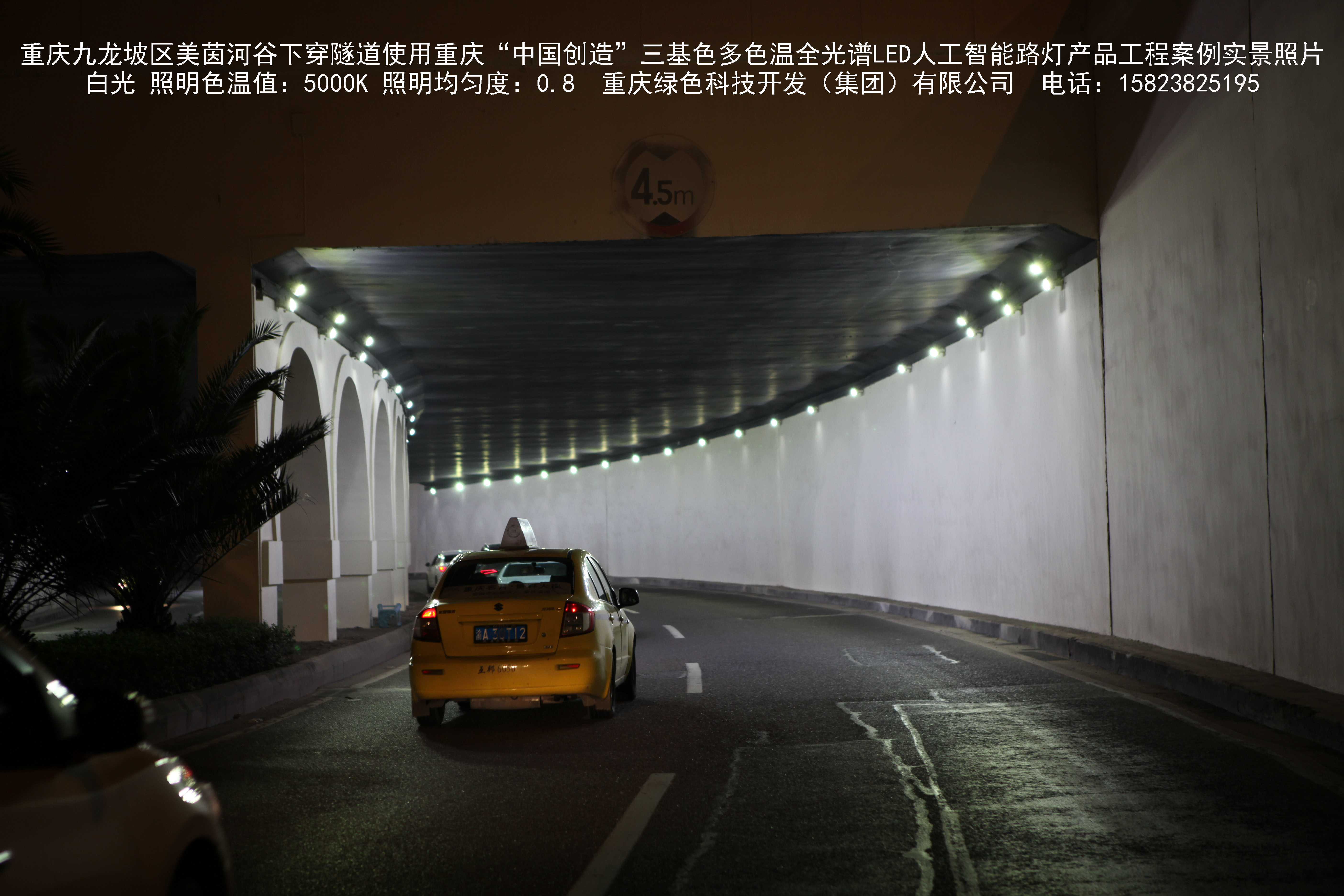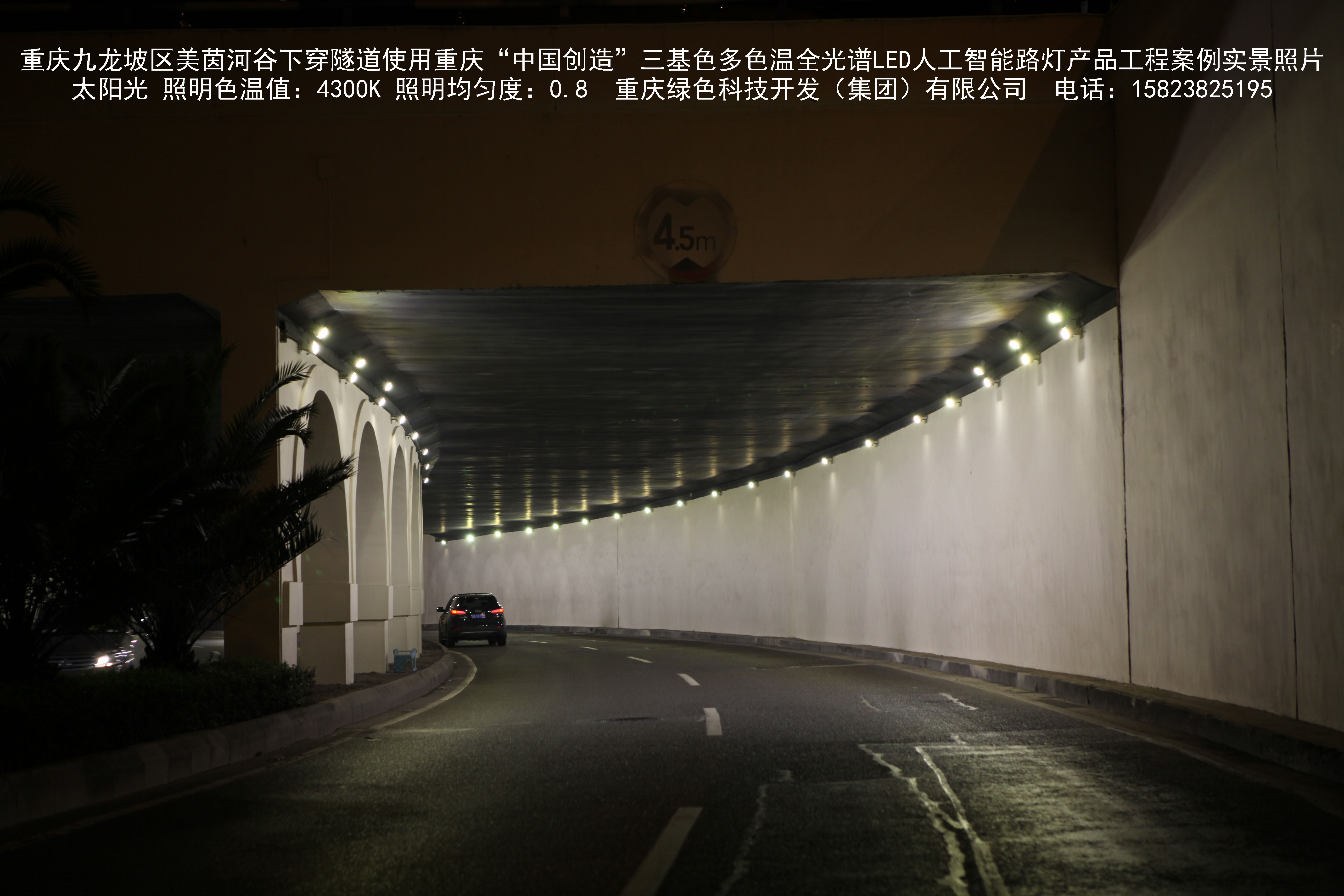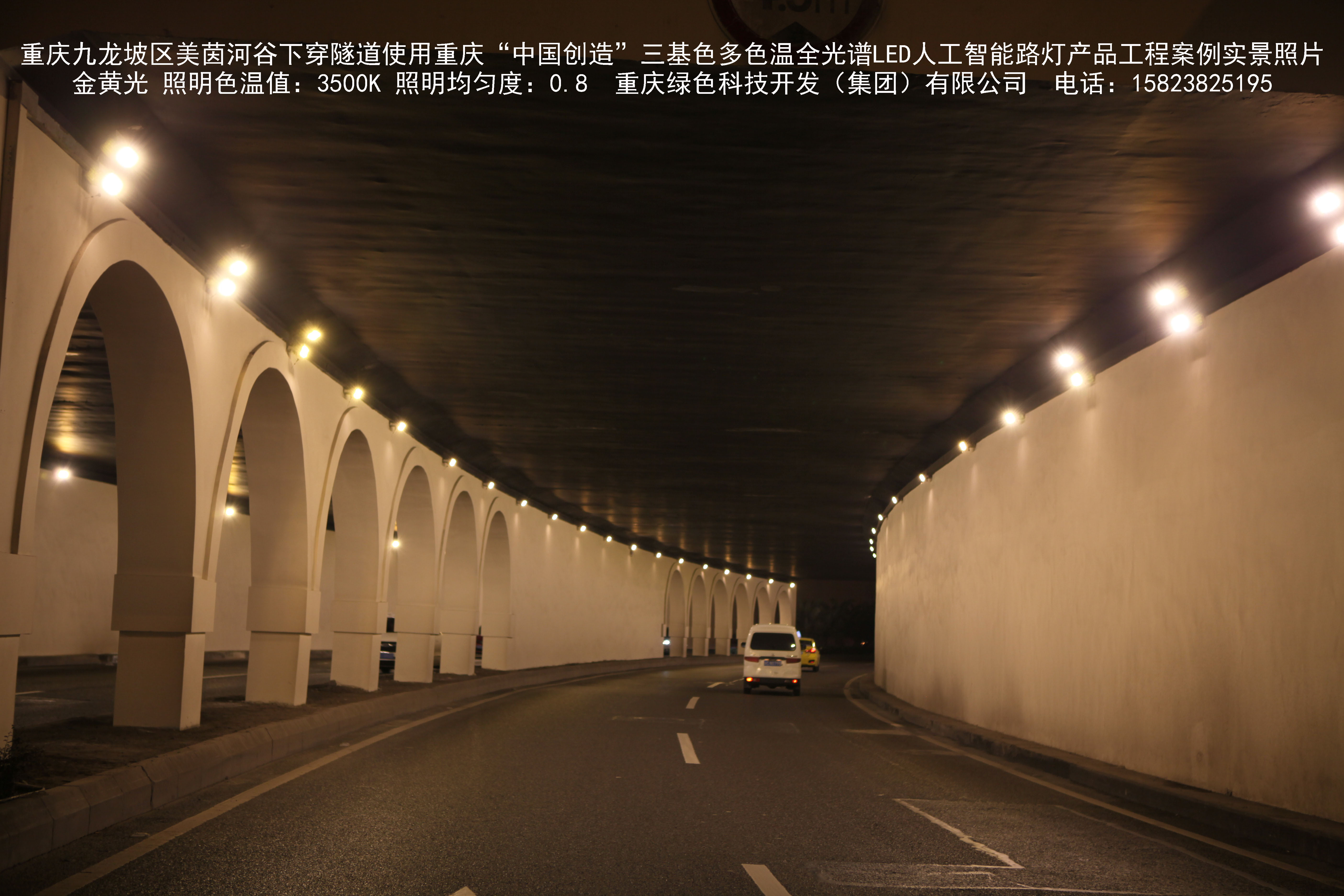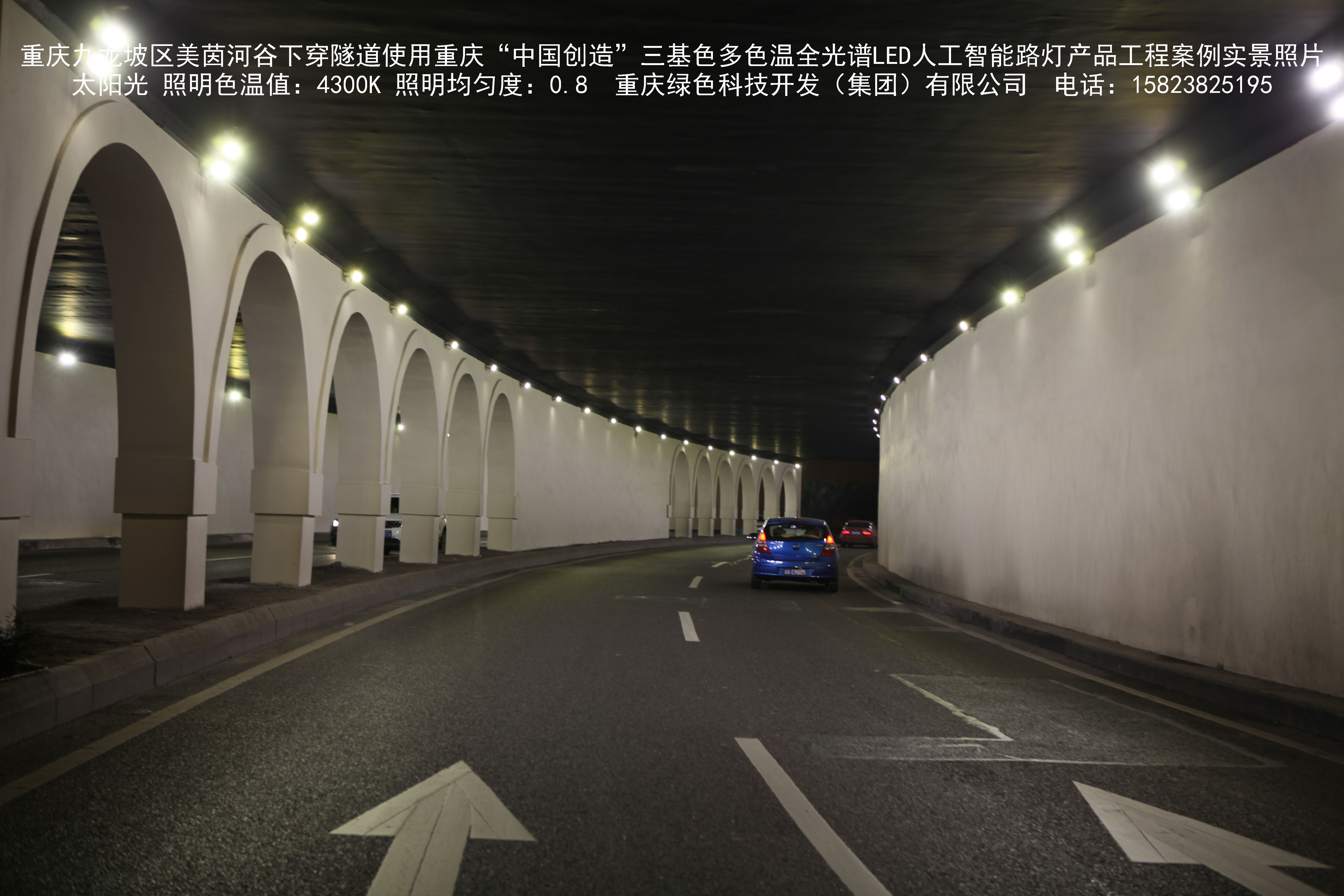 2018年9月,重慶市九龍坡區(qū)城市管理局使用我司自主研發(fā)制造的重慶“中國創(chuàng)造”三基色多色溫全光譜LED人工智能隧道燈系列產(chǎn)品,實(shí)施了美茵河谷下穿隧道市政設(shè)施品質(zhì)提升工程。該工程已全面竣工。工程實(shí)施后,極大地提高了城市照明清晰度、燈光均勻度、舒適度。通過智能終端實(shí)現(xiàn)單燈感知、線纜防盜報(bào)警,與原高壓鈉燈相比,節(jié)能率60%以上,有效解決了關(guān)閉控制回路或間隔關(guān)燈方式造成的照明暗區(qū),確保行人和車輛通行的安全,實(shí)現(xiàn)城市路燈照明系統(tǒng)的智能化管理,推進(jìn)了智慧城市建設(shè)。