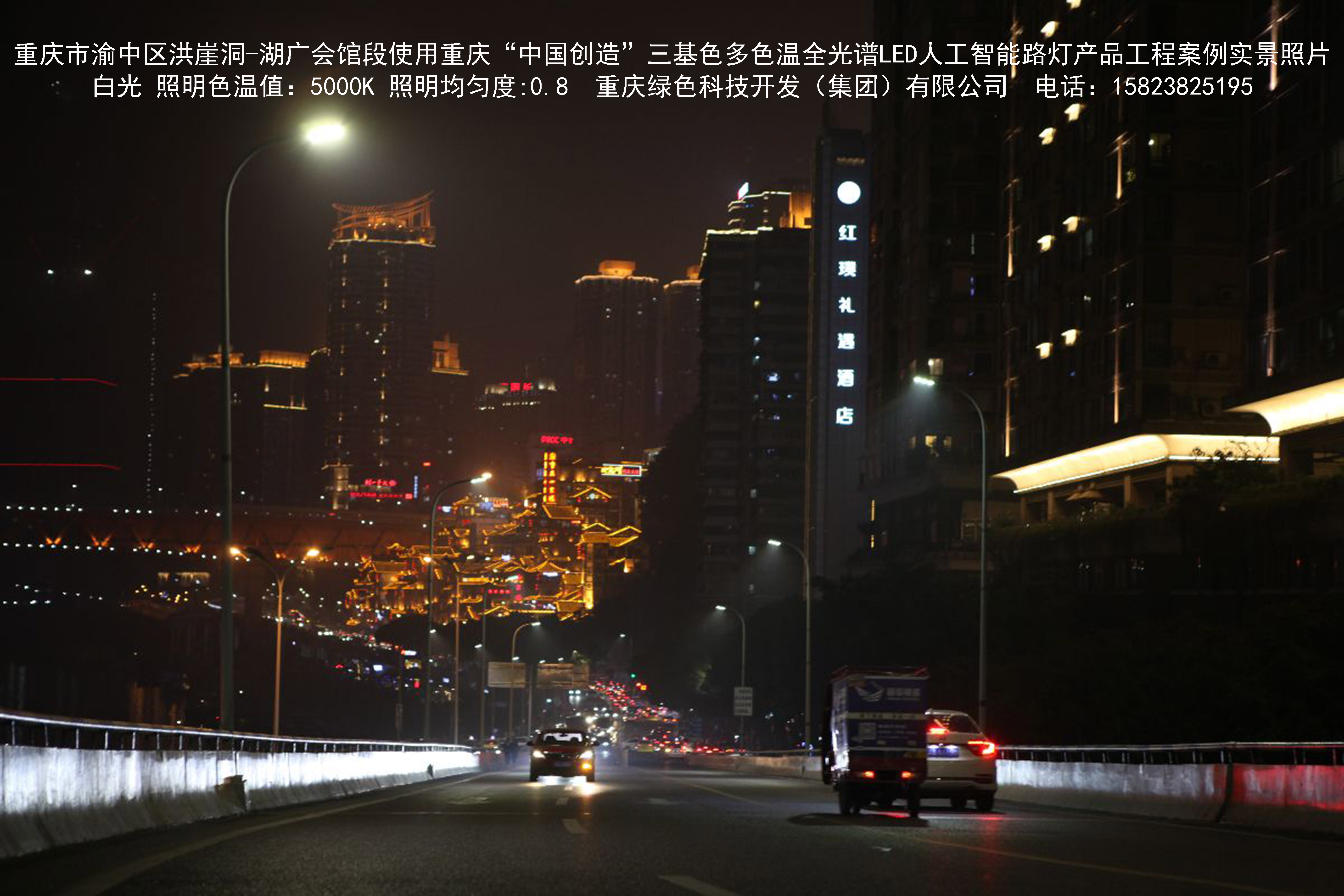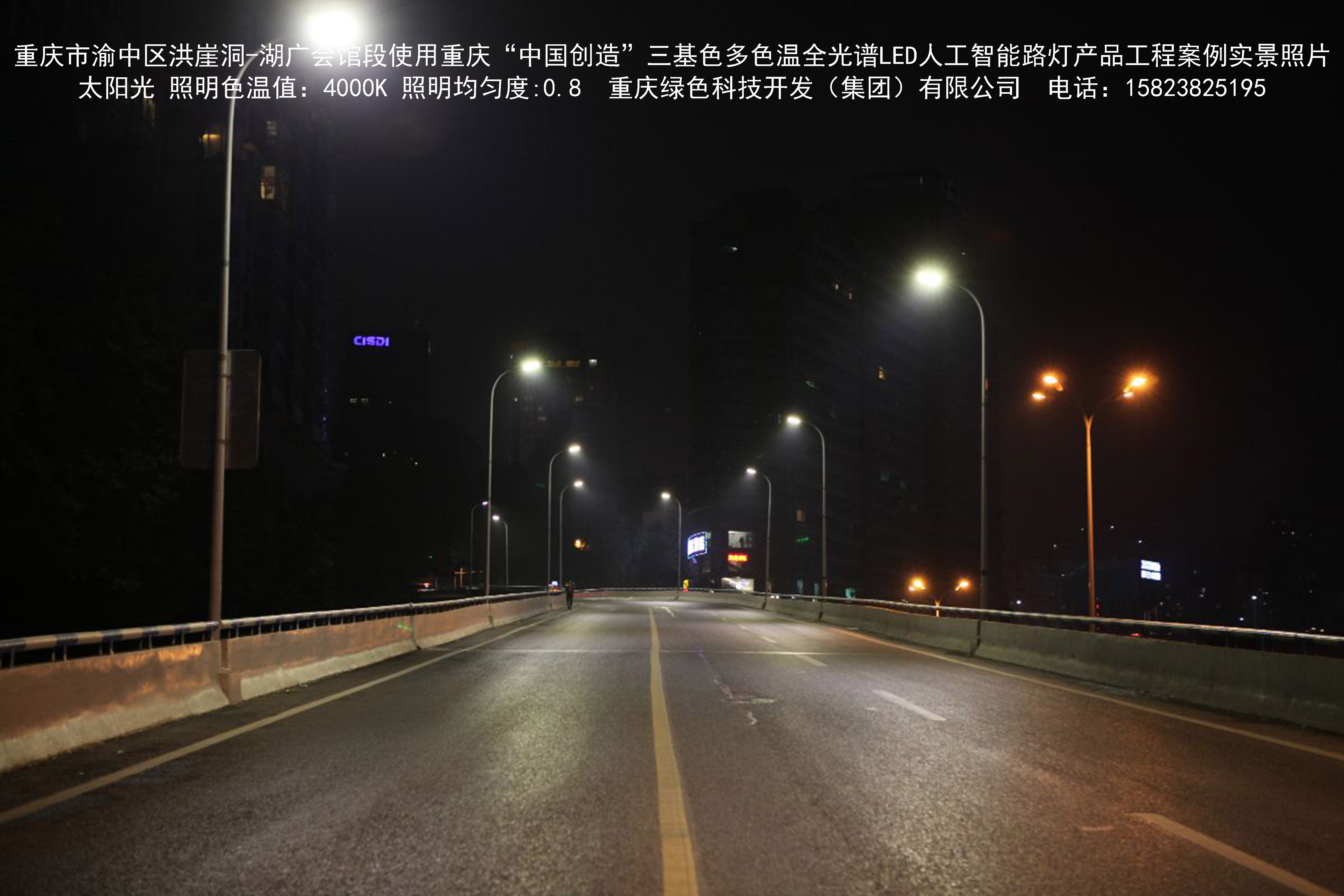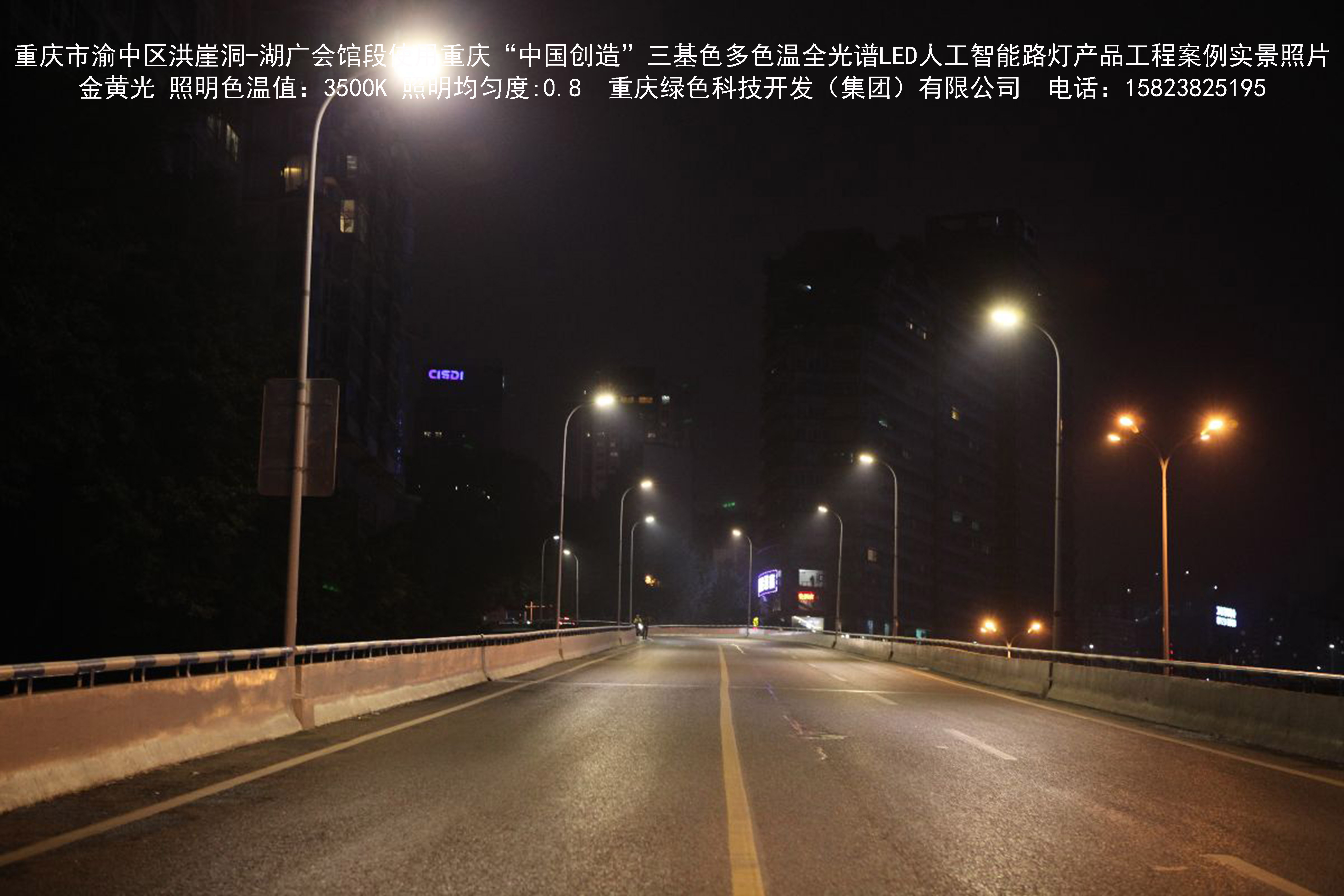 2018年12月,重慶市城市照明管理局使用我司自主研發(fā)制造的重慶“中國創(chuàng)造”三基色多色溫全光譜LED人工智能路燈系列產(chǎn)品,實施了渝中區(qū)市政設(shè)施品質(zhì)提升工程。該工程已全面竣工。工程實施后,極大地提高了城市照明清晰度、燈光均勻度、舒適度。通過智能終端實現(xiàn)單燈感知、線纜防盜報警,與原高壓鈉燈相比,節(jié)能率60%以上,有效解決了關(guān)閉控制回路或間隔關(guān)燈方式造成的照明暗區(qū),確保行人和車輛通行的安全,實現(xiàn)城市路燈照明系統(tǒng)的智能化管理,推進(jìn)了智慧城市建設(shè)。